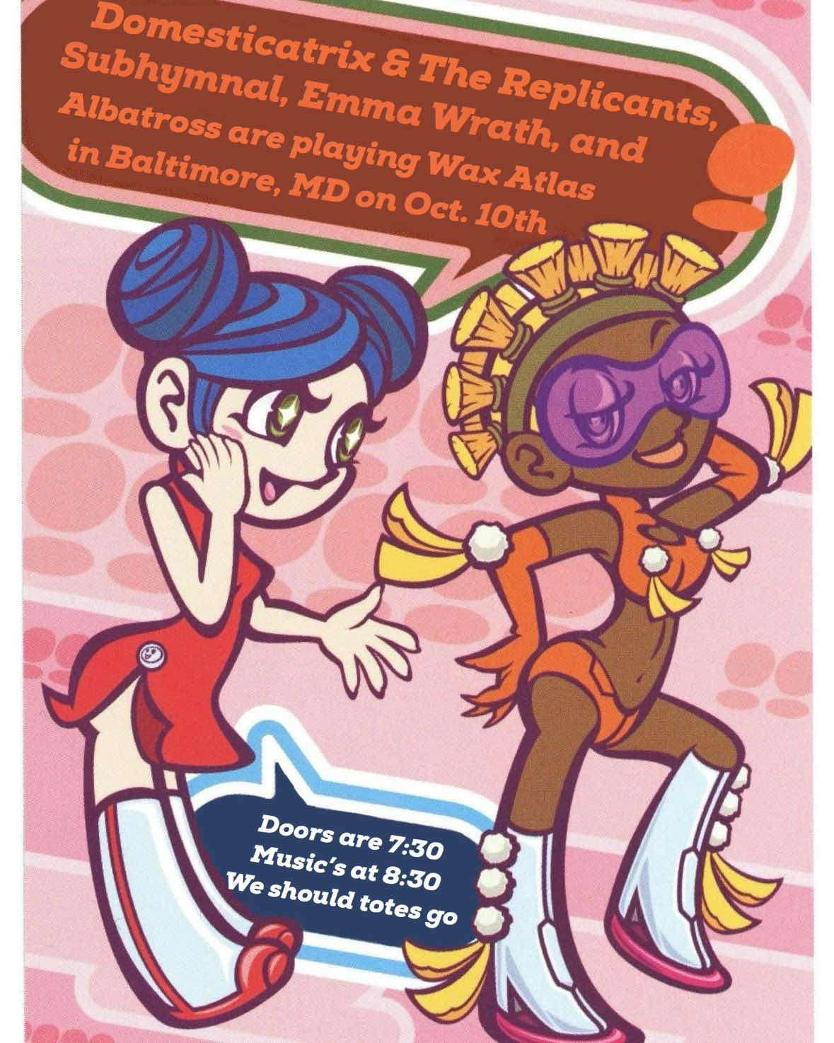 A FINE NIGHT FOR INDUSTRIAL VIBES Domesticatrix and the Replicants (AL), Subhymnal (AL), Albatross [Industrial, Punk]MUSIC AT 8:30 PM BUY ADVANCE TICKETS RSVP ON FACEBOOK DOMESTICATRIX Solo Industrial Noise Cyber Punk Action! Full band with Domesticatrix and the Replicants....